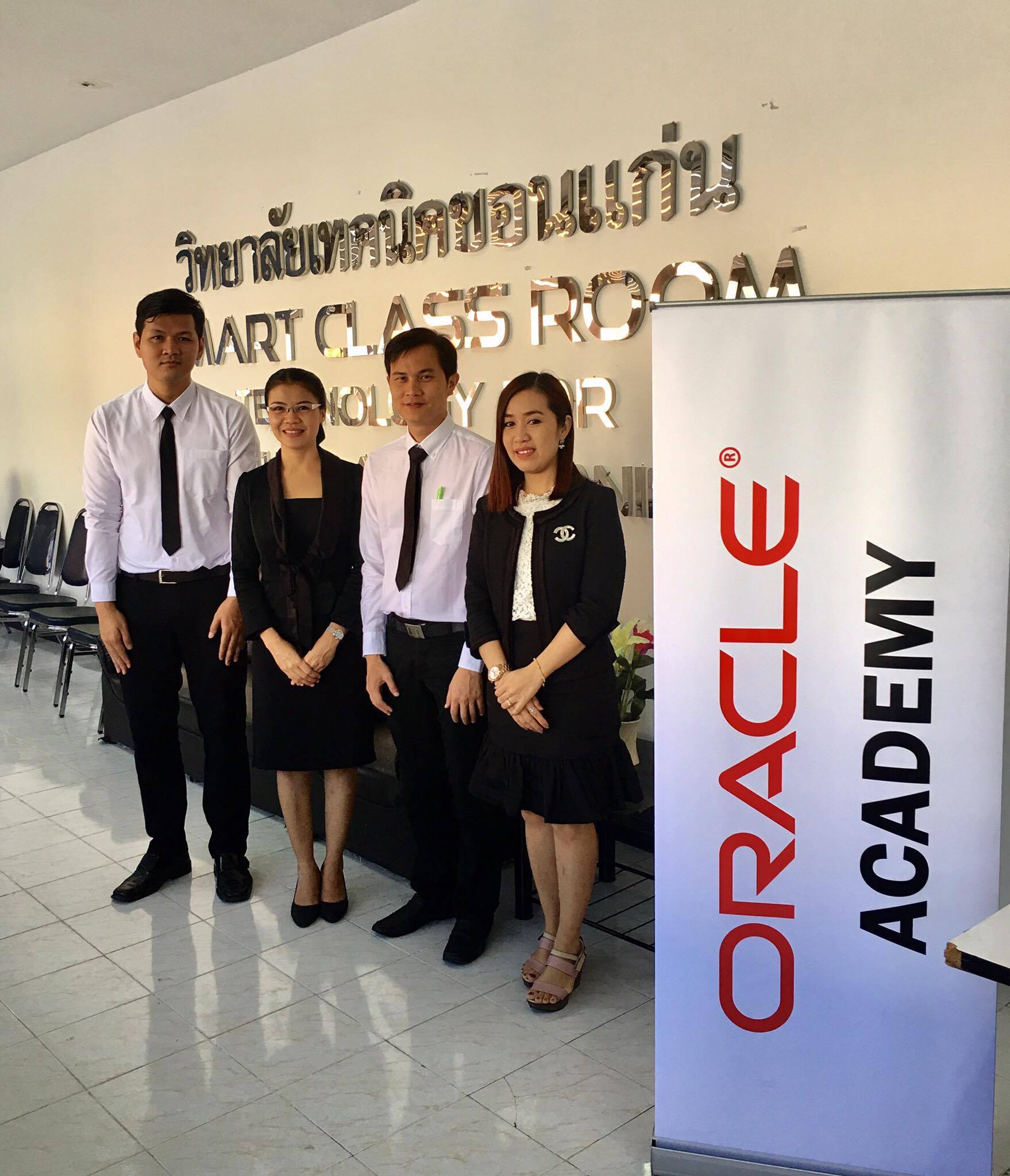 เนื่องด้วยทางคณะวิทยาการและเทคโนโลยีสารสนเทศได้เป็น Member ของ Oracle Academy ในวันที่ 28-29 มกราคม 2560 ที่ผ่านมา อ.ศศิวิมล ฮงมา หัวหน้าภาควิชาเทคโนโลยีสารสนเทศ และอ.สืบทัศน์ ลิ่มสายหั้ว หัวหน้าสาขาวิชาเทคโนโลยีสารสนเทศ จึงได้รับเชิญเป็นวิทยากรพิเศษในนาม Oracle Academy ประเทศไทย