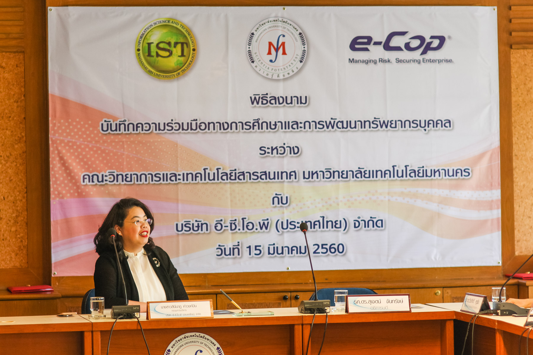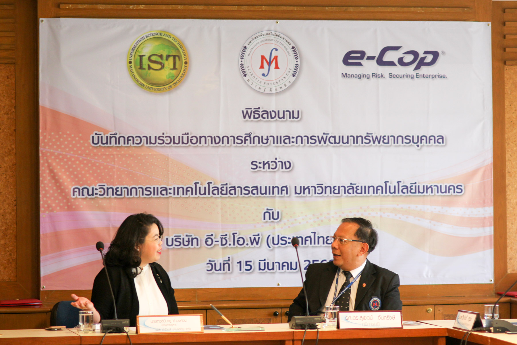 พิธีลงนามบันทึกความร่วมมือทางการศึกษาและการพัฒนาทรัพยากรบุคคล ระหว่าง คณะวิทยาการและเทคโนโลยีสารสนเทศ มหาวิทยาลัยเทคโนโลยีมหานคร กับ บริษัท อี-ซี.โอ.พี (ประเทศไทย) จำกัด
