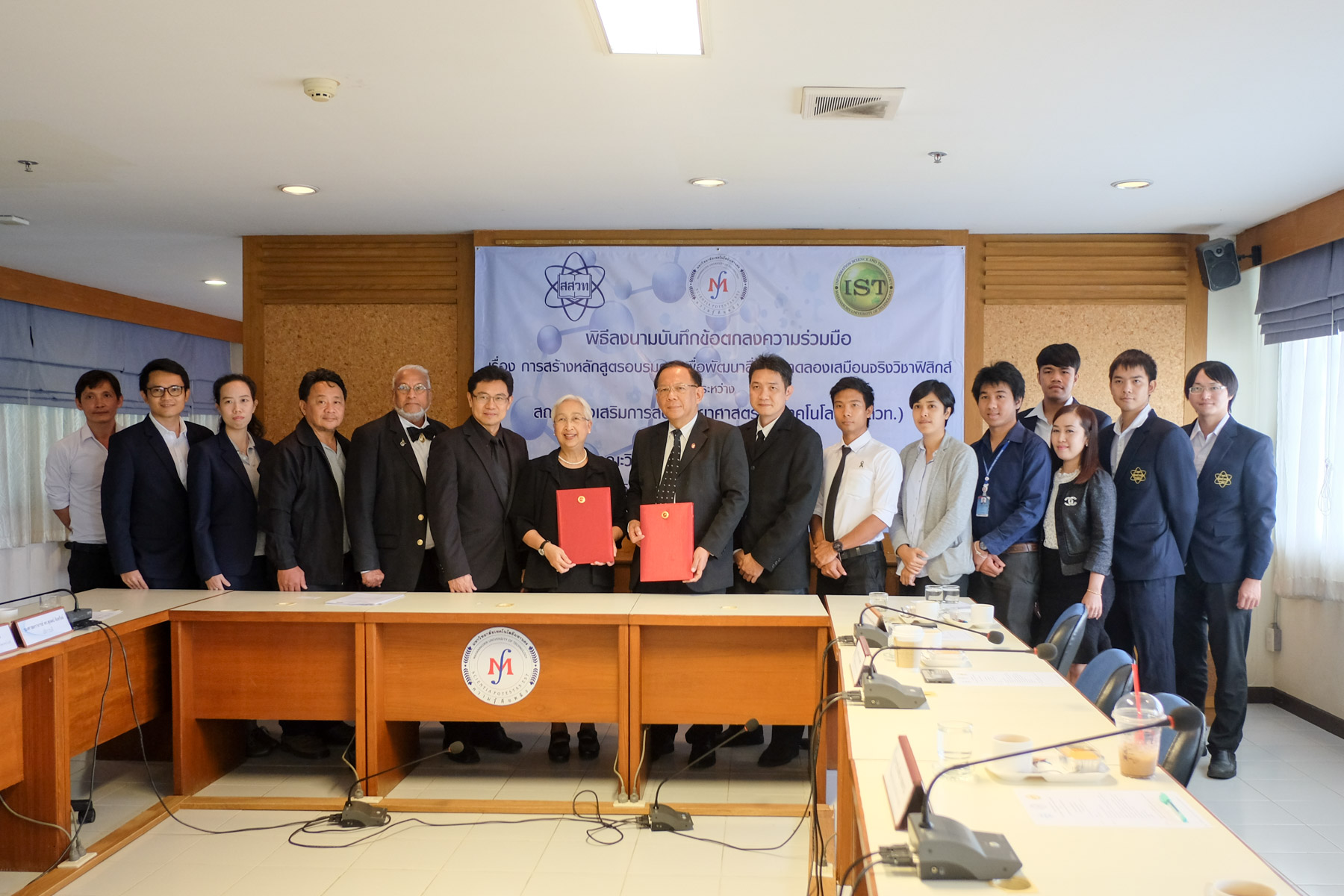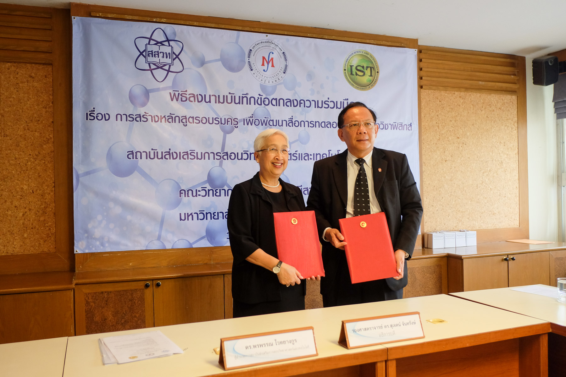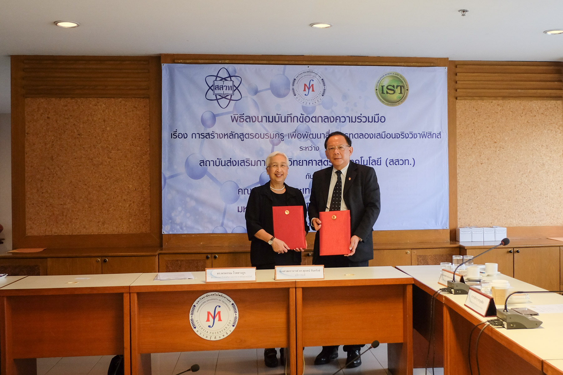 พิธีลงนามบันทึกข้อตกลงความร่วมมือ เรื่องการสร้างหลักสูตรอบรมครู เพื่อพัฒนาสื่อการทดลองเสมือนจริงวิชาฟิสิกส์ ระหว่าง สถาบันส่งเสริมการสอนวิทยาศาสตร์และเทคโนโลยี (สสวท.) กับ คณะวิทยาการและเทคโนโลยีสารสนเทศ มหาวิทยาลัยเทคโนโลยีมหานคร