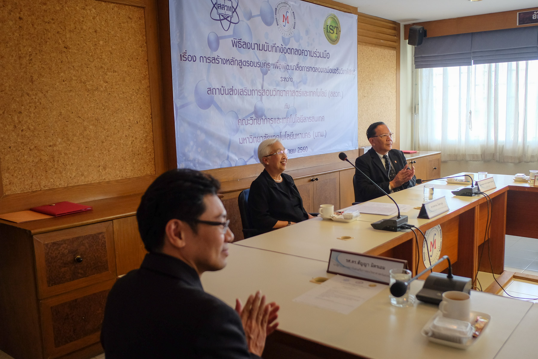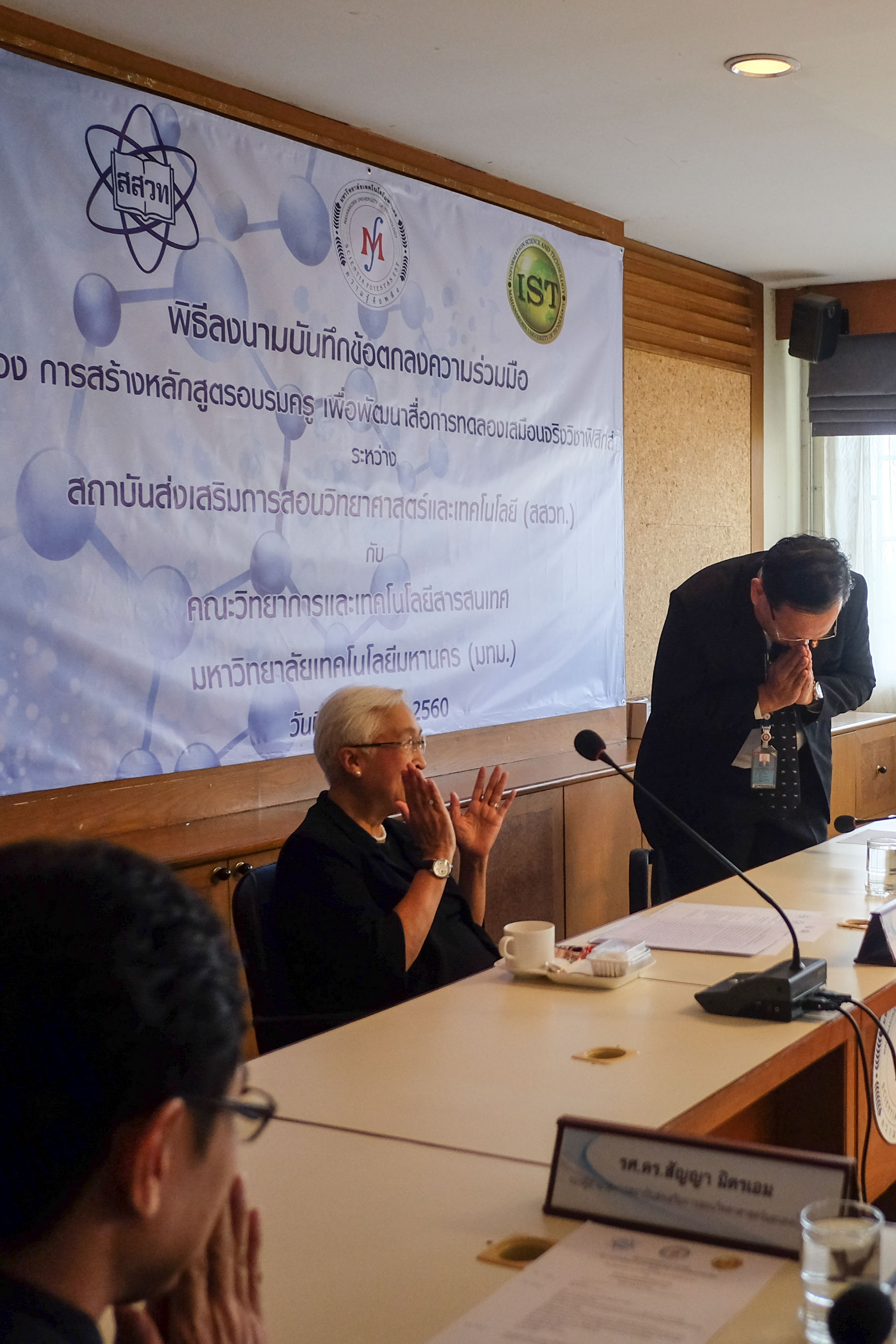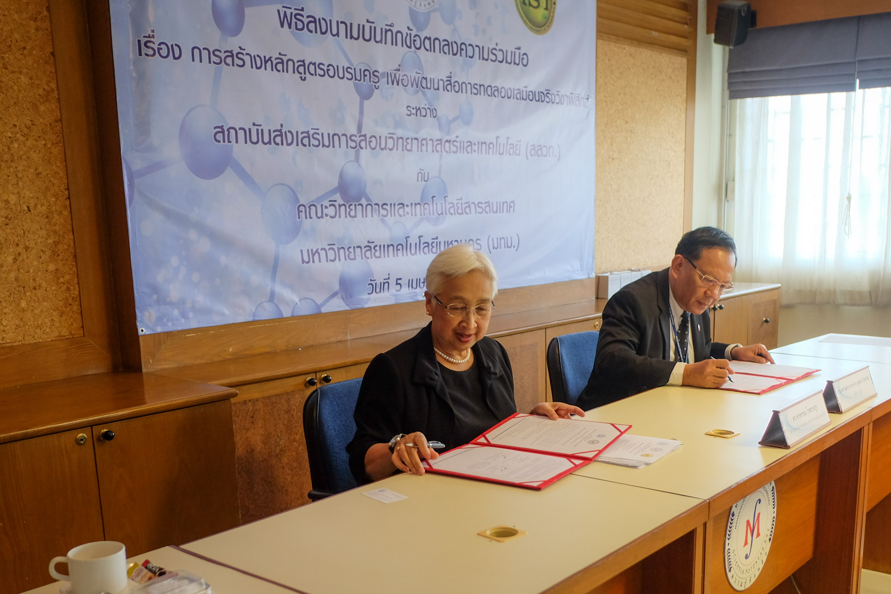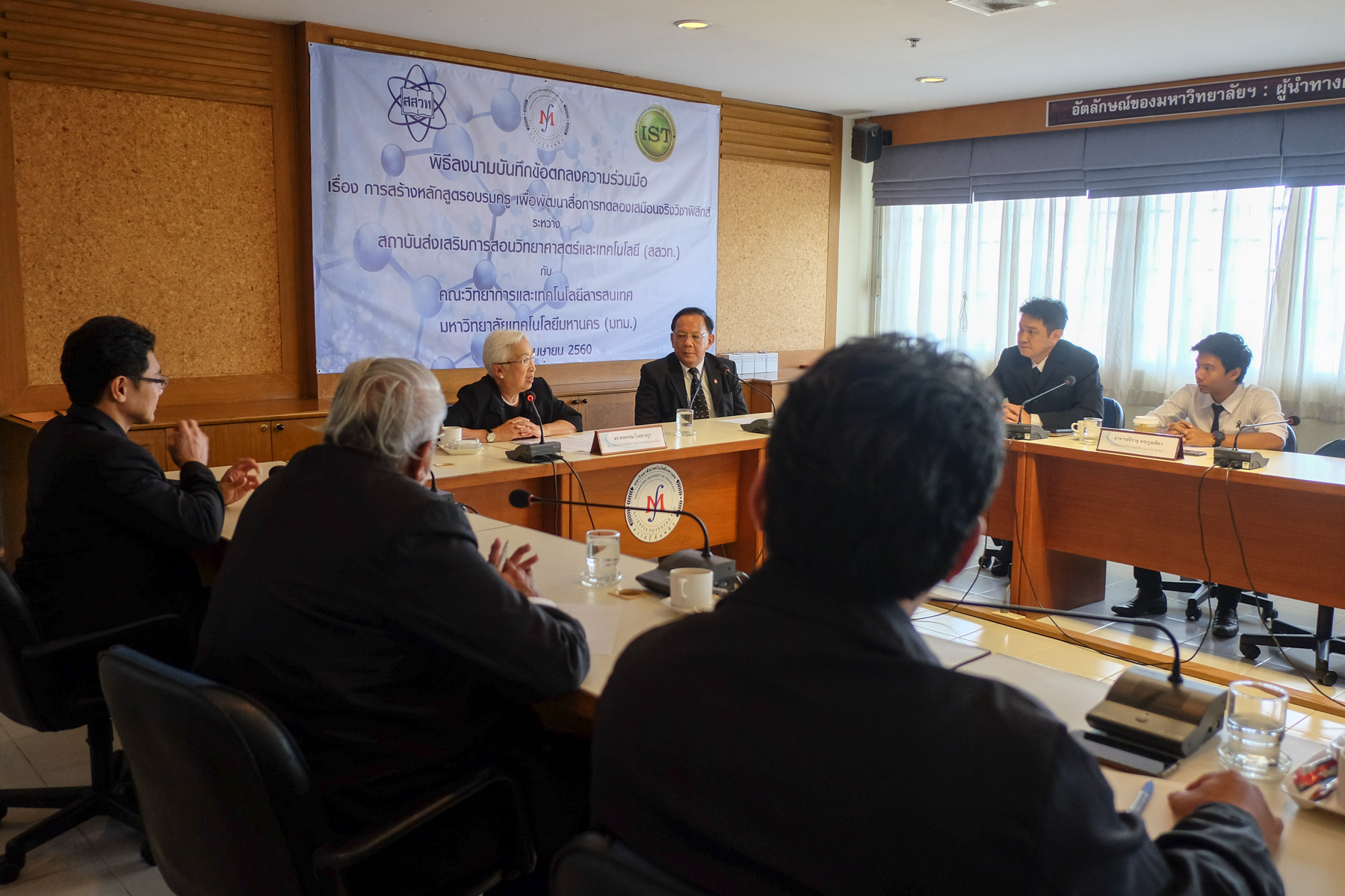 พิธีลงนามบันทึกข้อตกลงความร่วมมือ เรื่องการสร้างหลักสูตรอบรมครู เพื่อพัฒนาสื่อการทดลองเสมือนจริงวิชาฟิสิกส์ ระหว่าง สถาบันส่งเสริมการสอนวิทยาศาสตร์และเทคโนโลยี (สสวท.) กับ คณะวิทยาการและเทคโนโลยีสารสนเทศ มหาวิทยาลัยเทคโนโลยีมหานคร