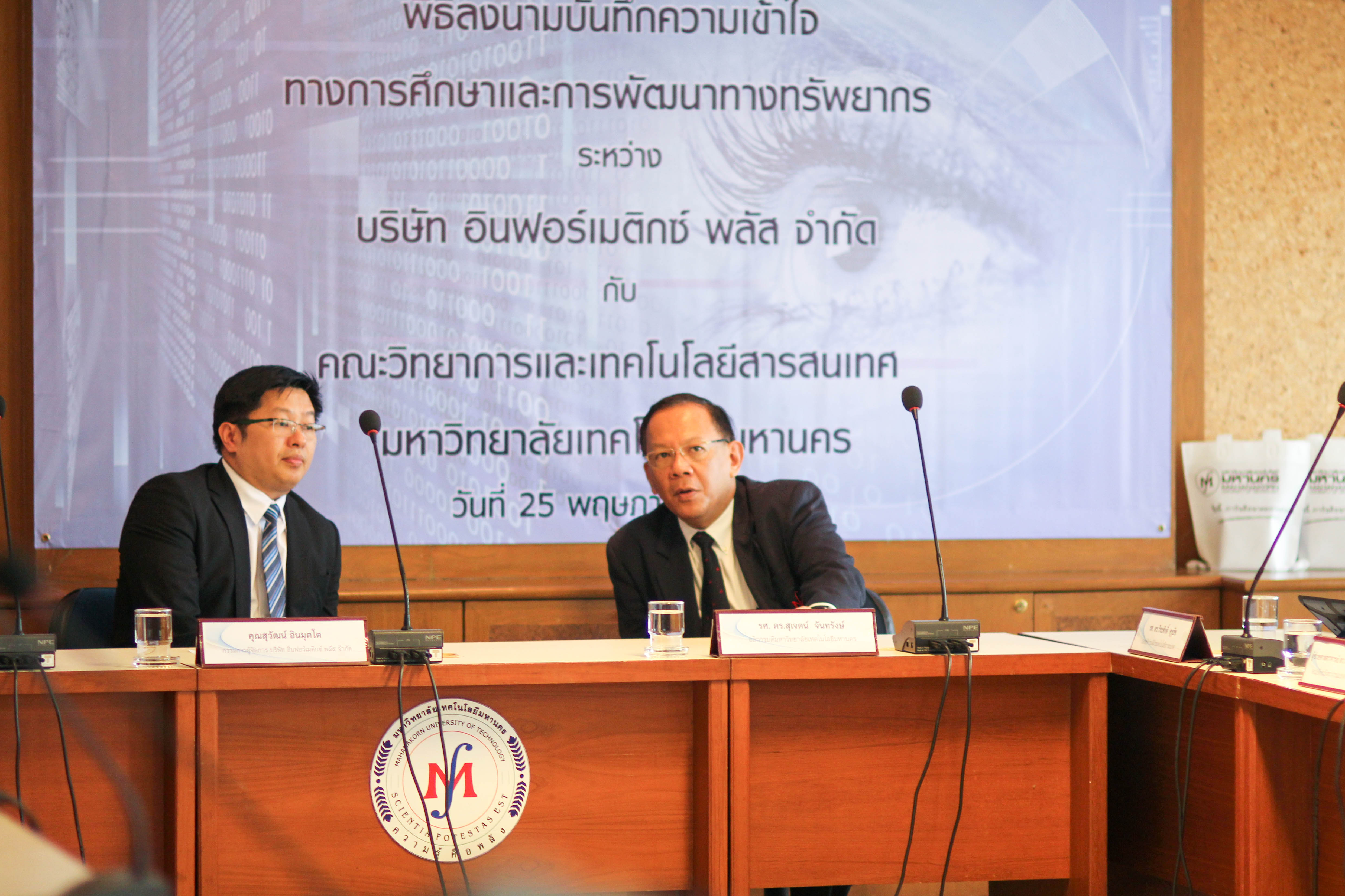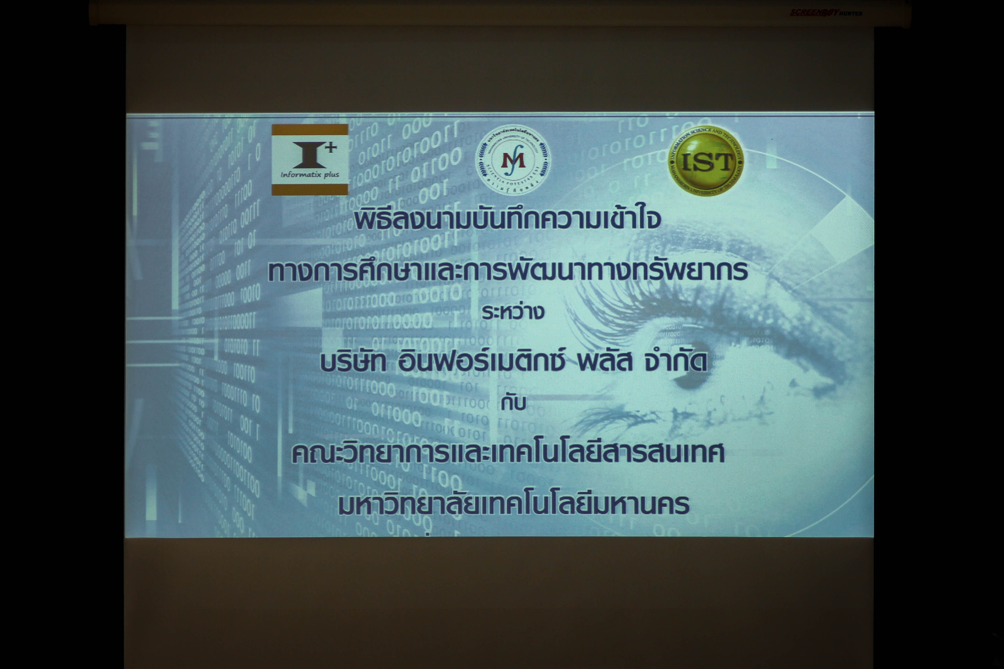 พิธีลงนามบันทึกความเข้าใจทางการศึกษาและการพัฒนาทางทรัพยากร ระหว่าง บริษัท อินฟอร์เมติกซ์ พลัส จำกัด กับ คณะวิทยาการและเทคโนโลยีสารสนเทศ มหาวิทยาลัยเทคโนโลยีมหานคร