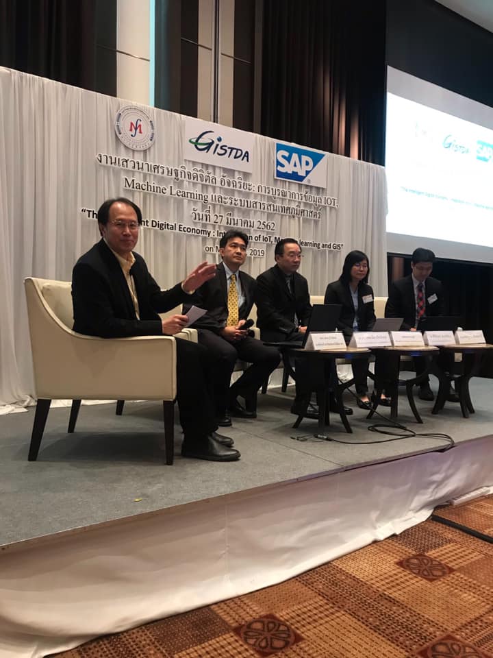 คณะวิทยาการและเทคโนโลยีสารสนเทศ ร่วมกับ สำนักงานพัฒนาเทคโนโลยีอวกาศและภูมิสารสนเทศ จัดงานเสวนา The intelligent digital economy :Integration of IoT,ML and GIS ที่โรงแรม Eastin Grand Hotel Sathorn