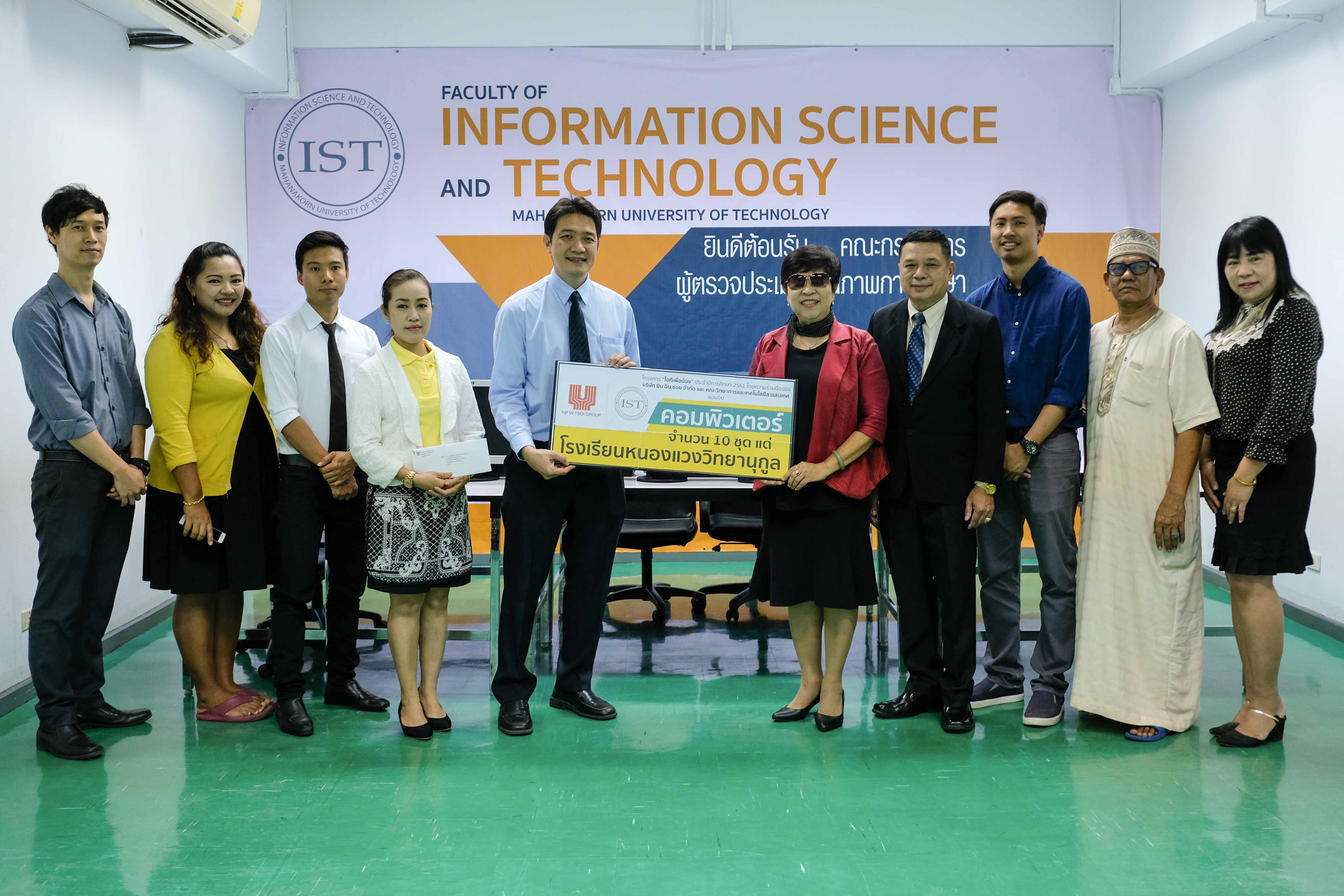 โครงการ "ไอทีเพื่อน้อง" ประจำปีการศึกษา 2561 โดยความร่วมมือของ บริษัท ยิบ อิน ซอย จำกัด และ คณะวิทยาการและเทคโนโลยีสารสนเทศ ขอมอบคอมพิวเตอร์จำนวน 10 ชุด แด่ โรงเรียนหนองแวงวิทยานุกูล