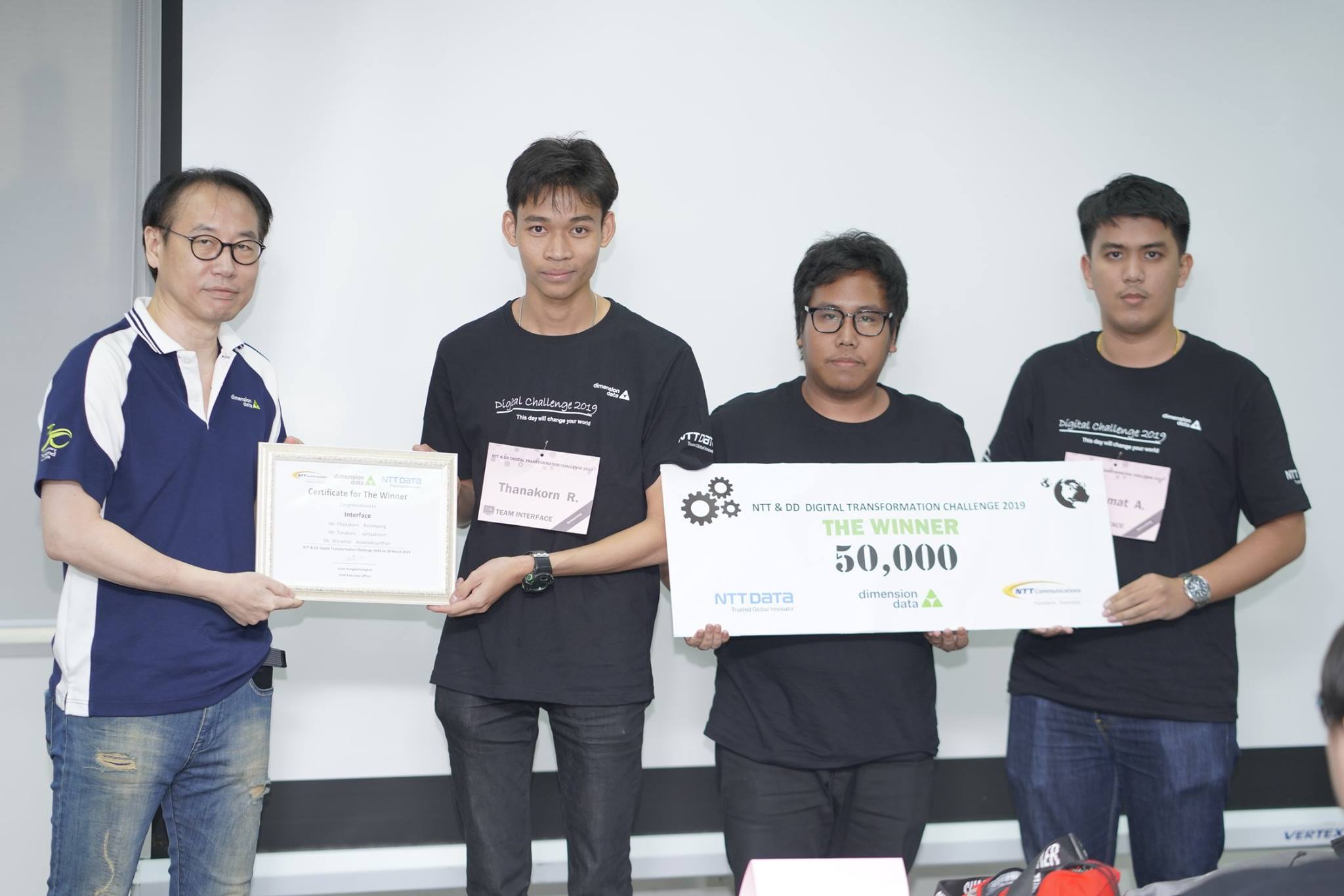 ขอแสดงความยินดีกับทีม Interface ที่ได้รับรางวัลชนะเลิศจาก Network room ในงาน "NTT & DD Digital Transformation Challenge 2019"