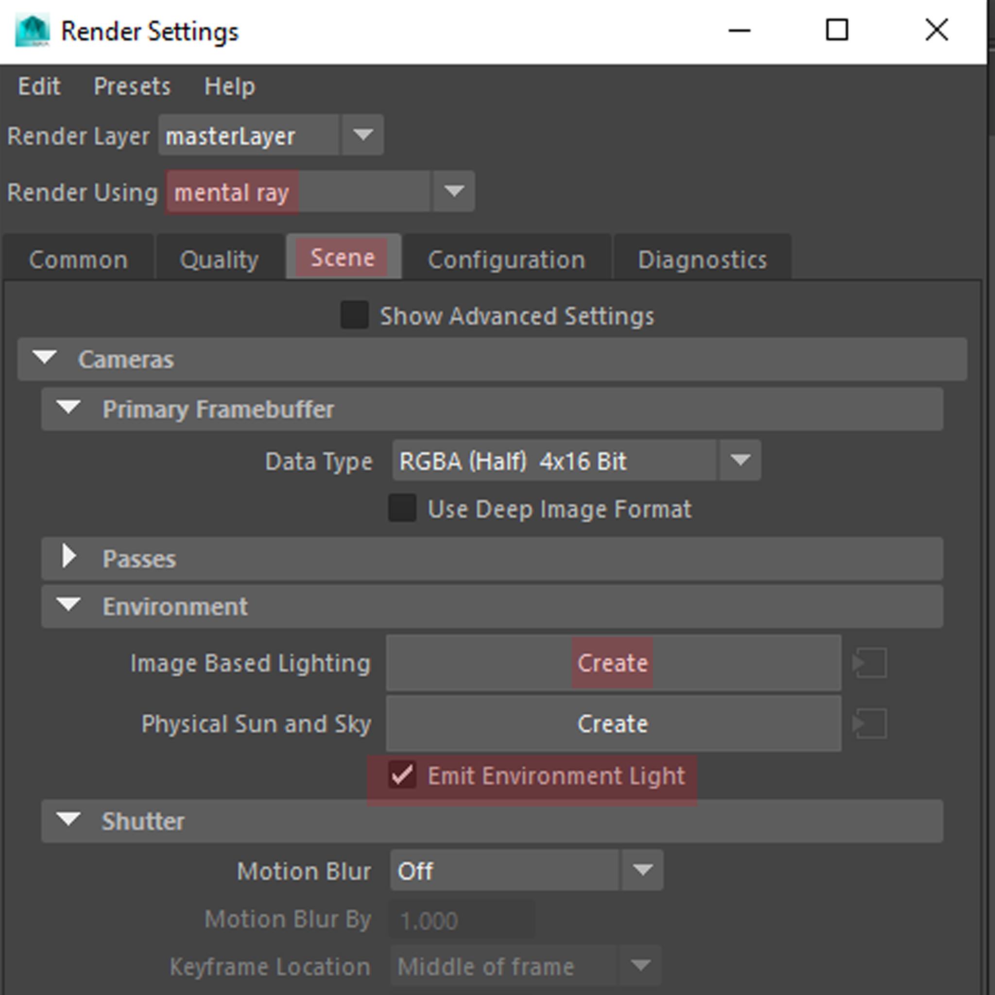 เลือก Emit Environment เพื่อให้คำนวณแสงจากรูปภาพ