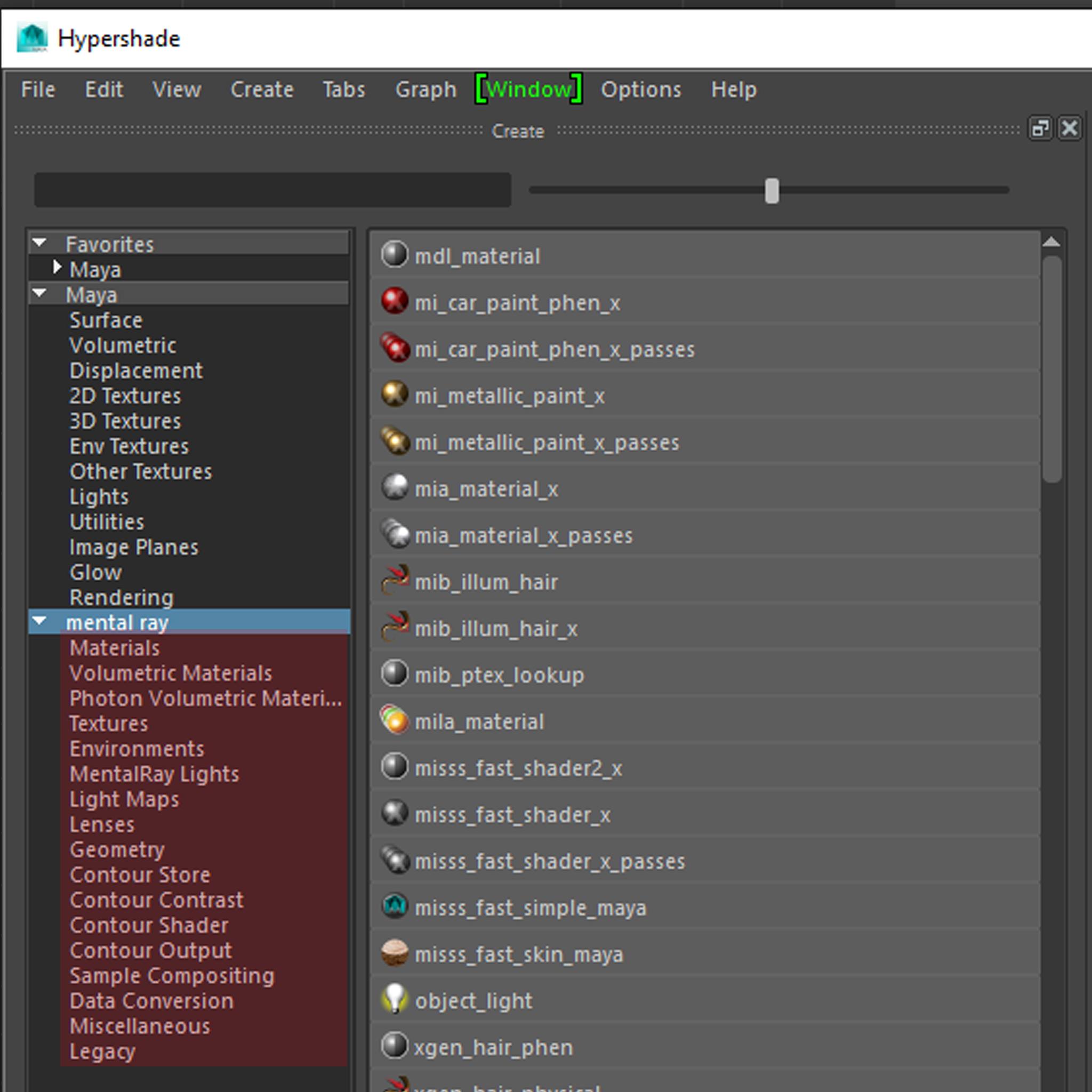 ในส่วนของ Hypershade ได้ทำการแบ่งหมวดหมู่ของ shader ออกเป็นส่วนย่อย ๆ เพื่อให้เลือกใช้งานได้โดยสะดวก