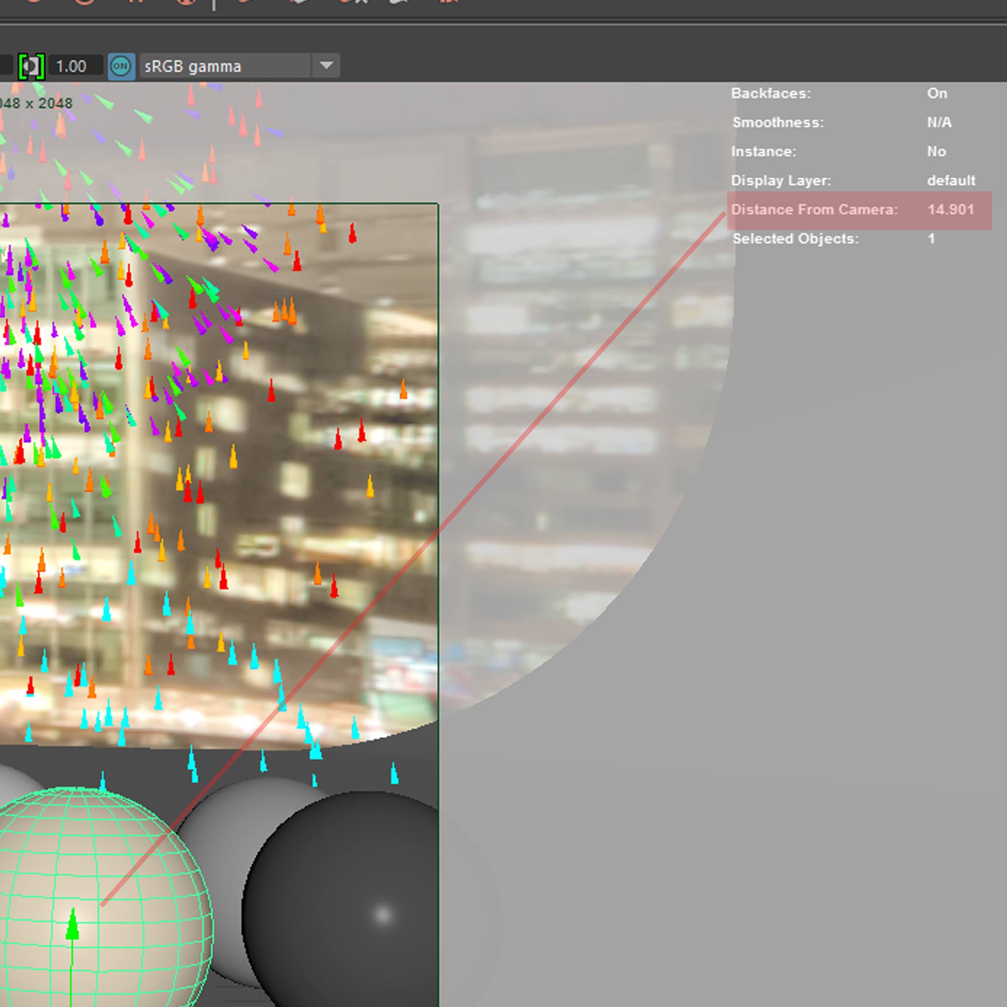 ข้อมูลของ Object ที่เราสนใจนั้นก็คือ Distance From Camera นั่นก็คือระยะห่างระหว่าง Object ที่เราเลือกกับตัวกล้องนั่นเอง เราสามารถกำหนดจุดที่เป็นโฟกัสของกล้องได้จากค่านี้ โดยนำไปกรอกในการปรับแต่ง Effect ในภายหลัง