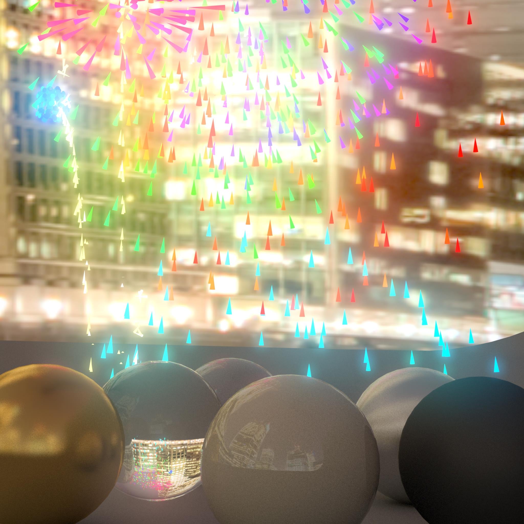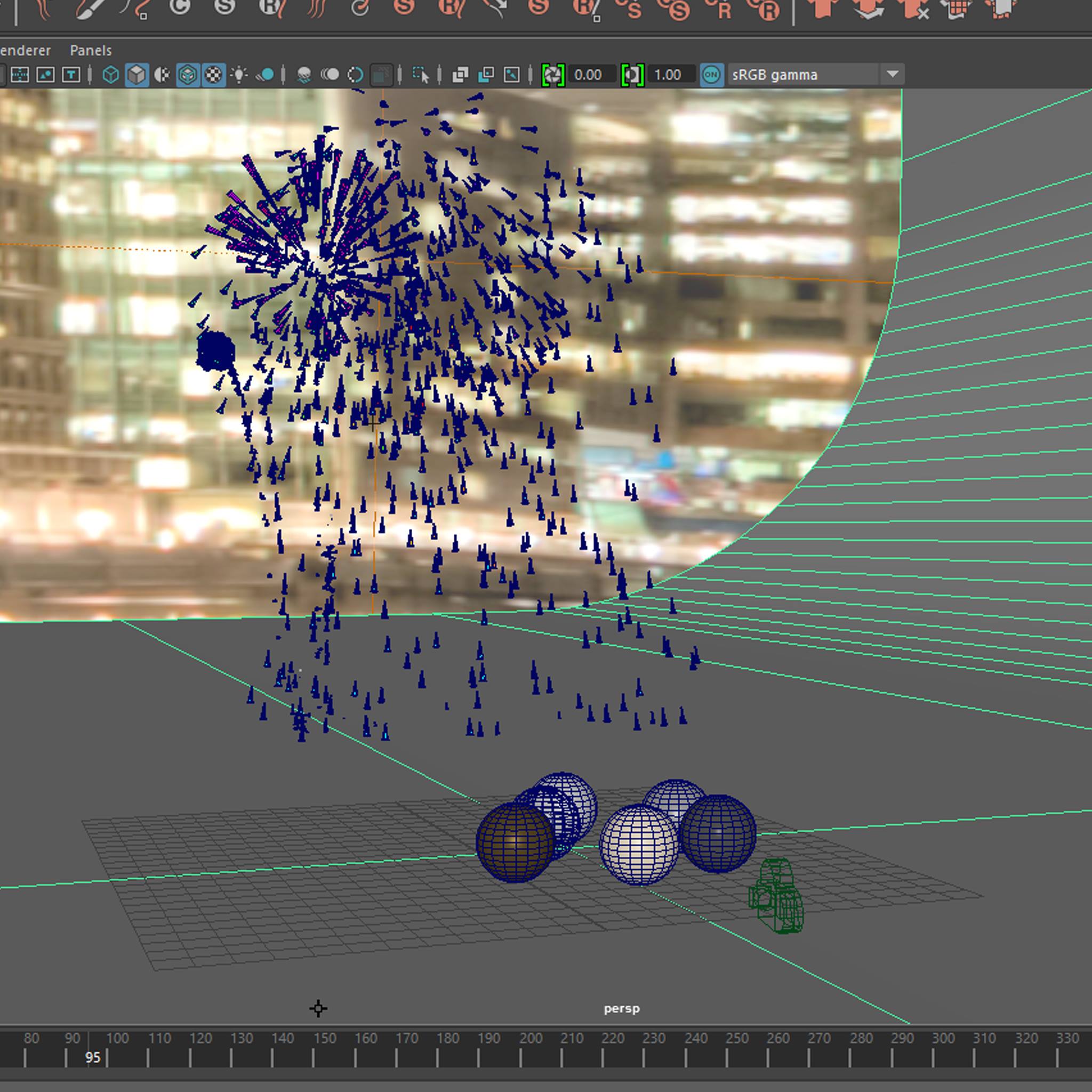 มาถึงส่วนของฉาก 3D scene แอดมินใช้การจัดวางโดยทดลองนำพลุสี สร้างโดย nParticle เพื่อสร้างดวงไฟโดยมีฉากหลังเป็นภาพของเมืองยามค่ำคืน