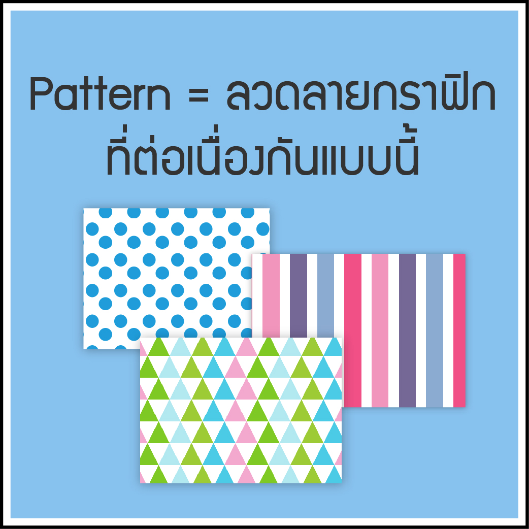 หลายคนอาจจะงง...ว่า Pattern คืออะไร ? ...ให้ลองนึกถึงลายผ้าปูเตียง ผ้าปูโต๊ะ หรือลายกระดาษห่อของขวัญ.....อะไรแบบนั้นล่ะ...นึกออกกันหรือยัง??