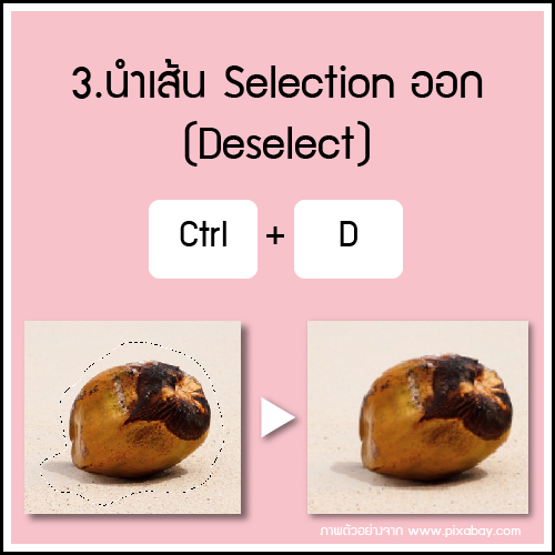 3. เมื่อเราทำงานในโหมด Selection เราสามารถยกเลิกเส้น Selection แบบรวดเร็วโดยกด Ctrl + D
