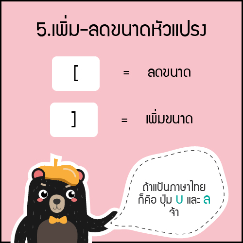 5. เมื่อเราทำงานที่เกี่ยวข้องกับหัวแปรงเพื่อให้ทำงานได้สะดวกขึ้น แค่กดปุ่ม [ (บ) และปุ่ม ] (ล) สำหรับการปรับขนาดหัวแปรง