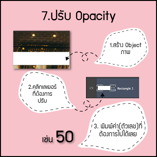 7. ปรับ Opacity ได้ง่ายๆแค่พิมพ์ค่าลงไปเฉยๆได้เลย (แต่ก่อนอื่นให้อยู่ในโหมด Move Tool ก่อนจะดีกว่าแล้วค่อยพิมพ์)