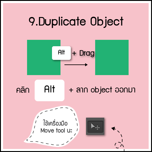 9. คัดลอกวัตถุแบบเร็วได้เพียงแค่กดปุ่ม Alt ค้างไว้ แล้วลากวัตถุออกมา