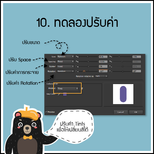 เมื่อเลือกโหมด Random จะเห็นว่าค่า Size จะปรับได้ทั้งซ้ายและขวา...ทดลองเลื่อนปรับค่ากันดูนะ เอาที่เราว่าโอเคละกันเนอะ