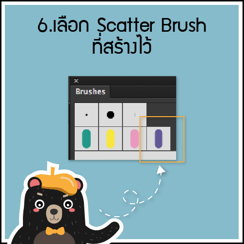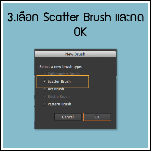 Scatter Brush = การสร้าง object ที่เราวาดมาประยุกต์ใช้เป็น Brush ที่กระจายตัวเรียงตามแนวเส้น นั่นเอง..